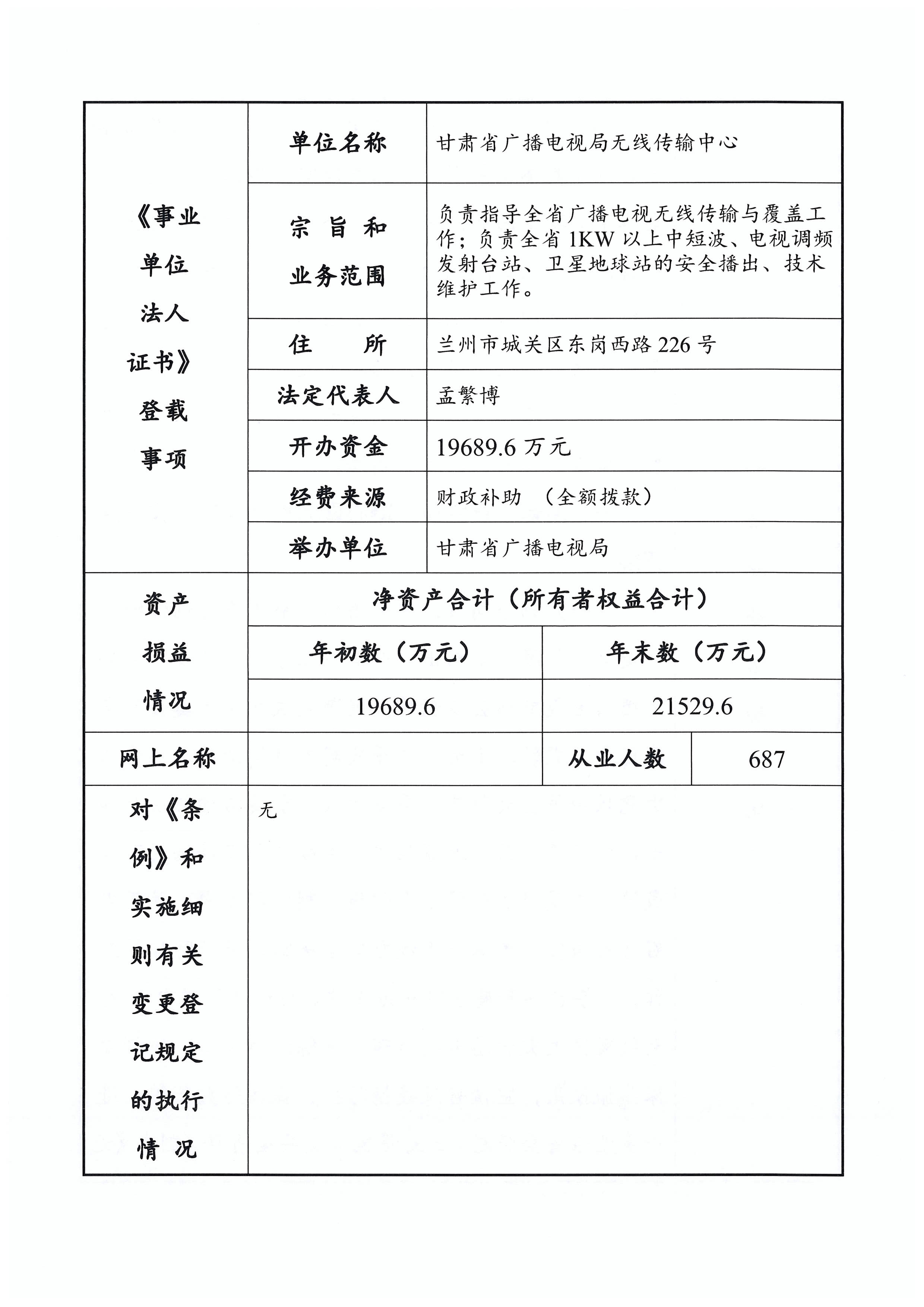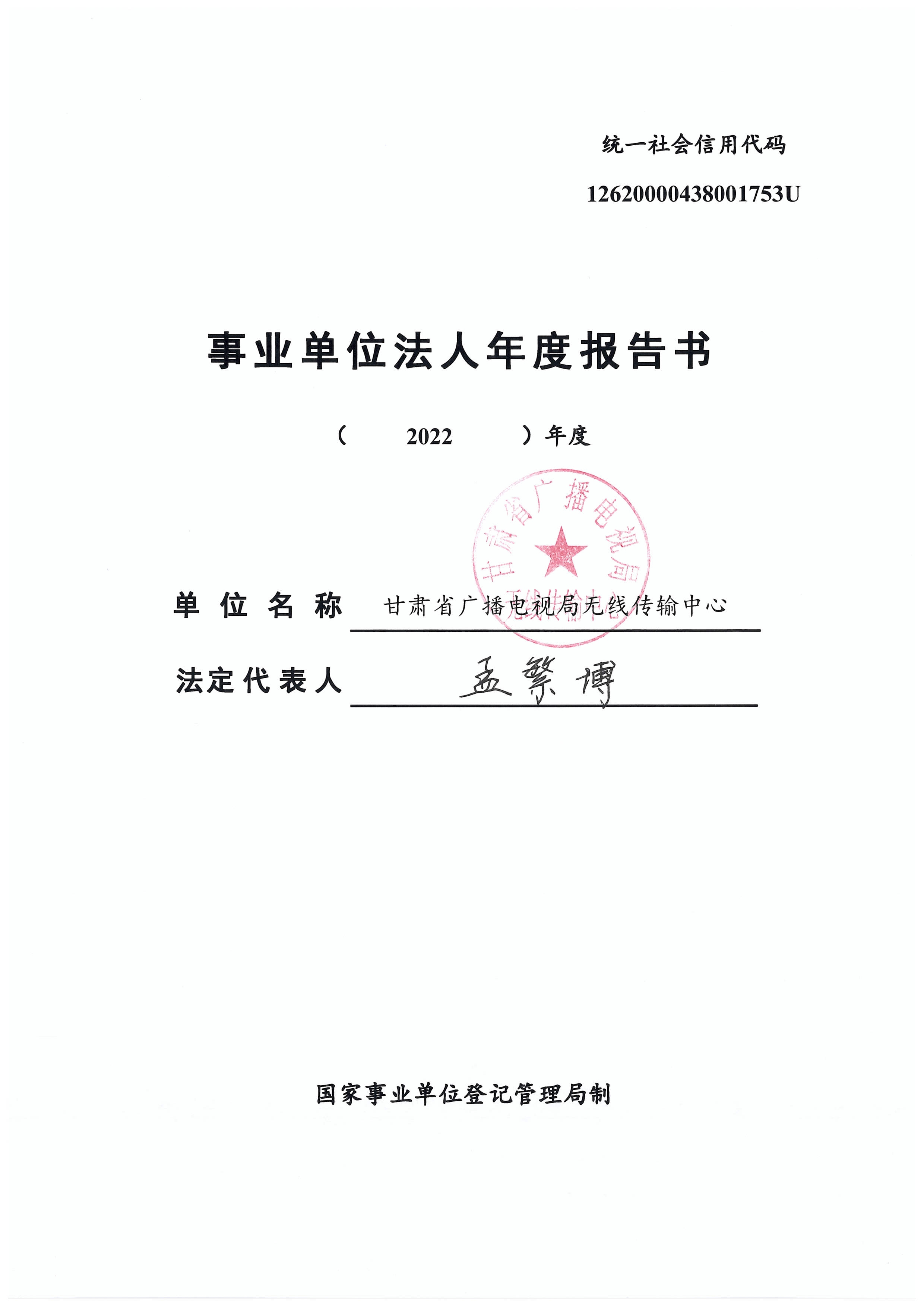 甘肃省广播电视局无线传输中心2022年度事业单位法人报告书
