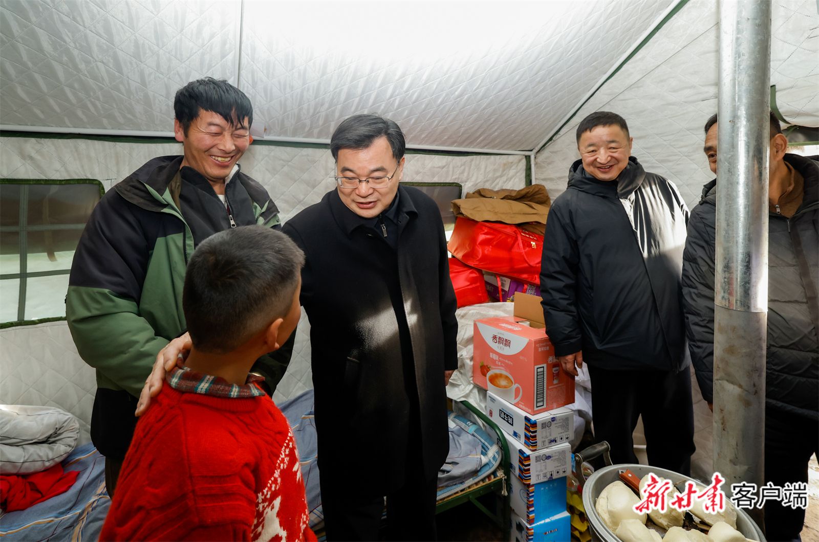 1月27日,省委书记、省人大常委会主任胡昌升赶赴迭部县地震灾区,实地调研指导抗震救灾工作,看望慰问避险安置群众。(记者孟捷)