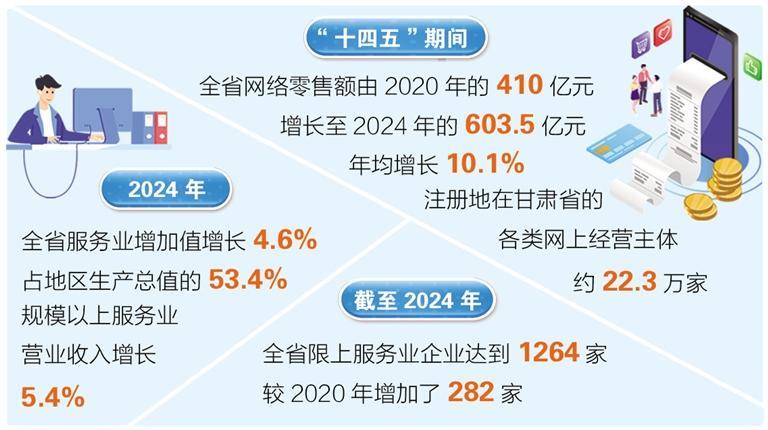 据省商务厅统计,“十四五”期间,全省网络零售额由2020年的410亿元增长至2024年的603.5亿元,年均增长10.1%,注册地在甘肃省的各类网上经营主体约22.3万家。